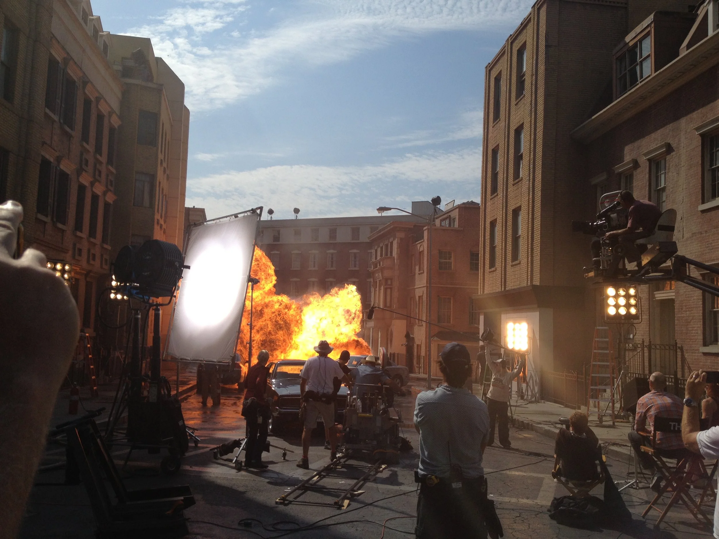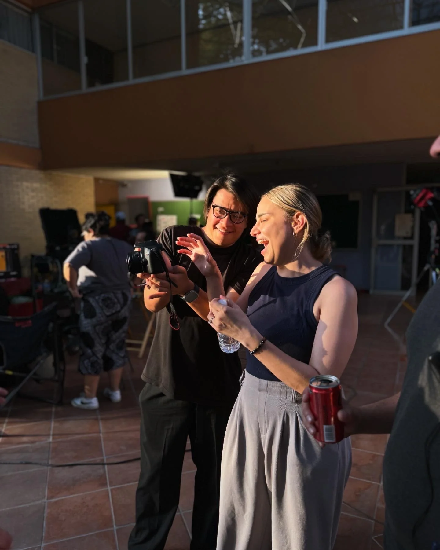 Diego Luna directs Maya Rudolph and Dennis Glover on the set of Mr. Pig